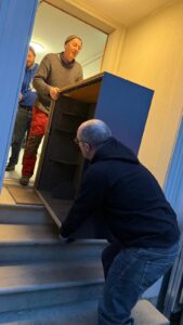Um punkt acht Uhr morgens des 23. Januars traf sich der Zügeltrupp in den alten Räumlichkeiten an der Hohenzornstrasse 4. Ziel: Das ganze Mobiliar in einem Stück wegbringen. Mit grosser Unterstützung zahlreicher Kantonsrät:innen bewegte sich Möbelstück um Möbelstück die Treppe hinunter. Wir hievten sie dann auf die Ladefläche des Transporters, der uns von Martin Nafzger zur Verfügung gestellt wurde. Weiter bedanken wir uns auch herzlich bei der Frauenfelder Stadträtin Barbara Dätwyler und Kantonsrat Turi Schallenberg die neben tätkräftiger Unterstützung auch ihre Autos dabeihatten. Komplettiert wurde das Zügel-Team von Parteisekretär Yves Müller, Parteipräsidentin Marina Bruggmann und Kantonsrätin Linda Hess.